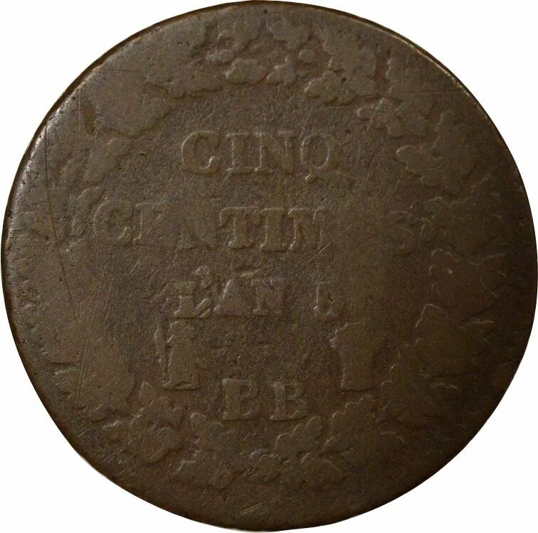 Accueil > Monnaies françaises (470 à 2002) > Monnaies Modernes (1789 à 2002) > 5 centimes > France Dupré - 5 Centimes, Grand Module - An 5 BB Strasbourg