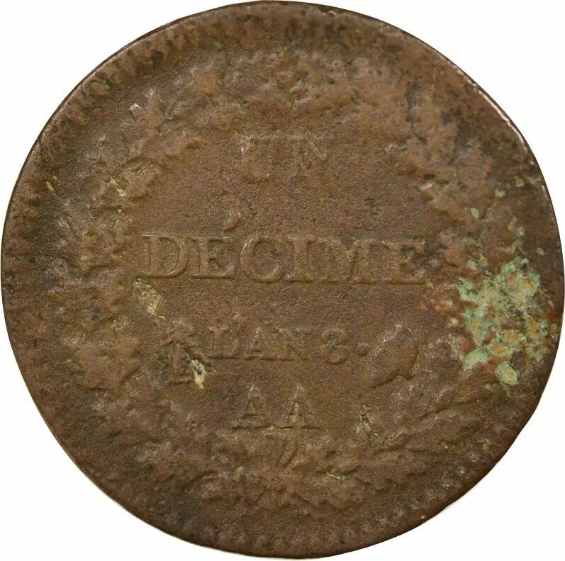 Pièce France Dupré - Décime, Grand Module - An 8 AA Metz