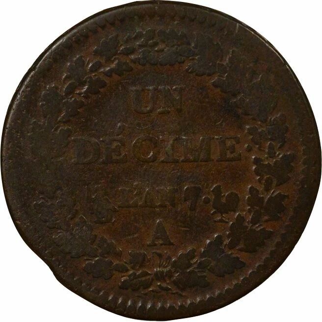 Home > French coins (470 à 2002) > Modern Currencies (1789 to 2002) > 10 centimes > France Dupré - Décime, Large Diameter - Year 7 A Paris