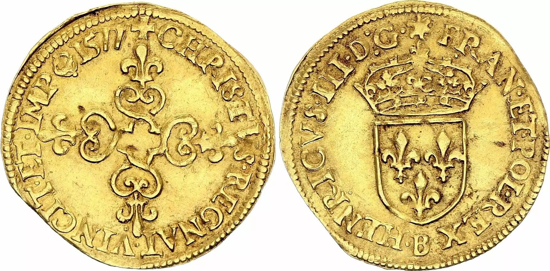 Pièce France Ecu d'Or au Soleil, Henri III - 1577 B Rouen