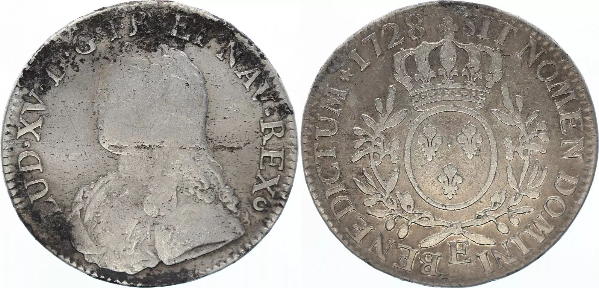 Pièce France Ecu Louis XV aux branches d'olivier - 1728 E TOURS