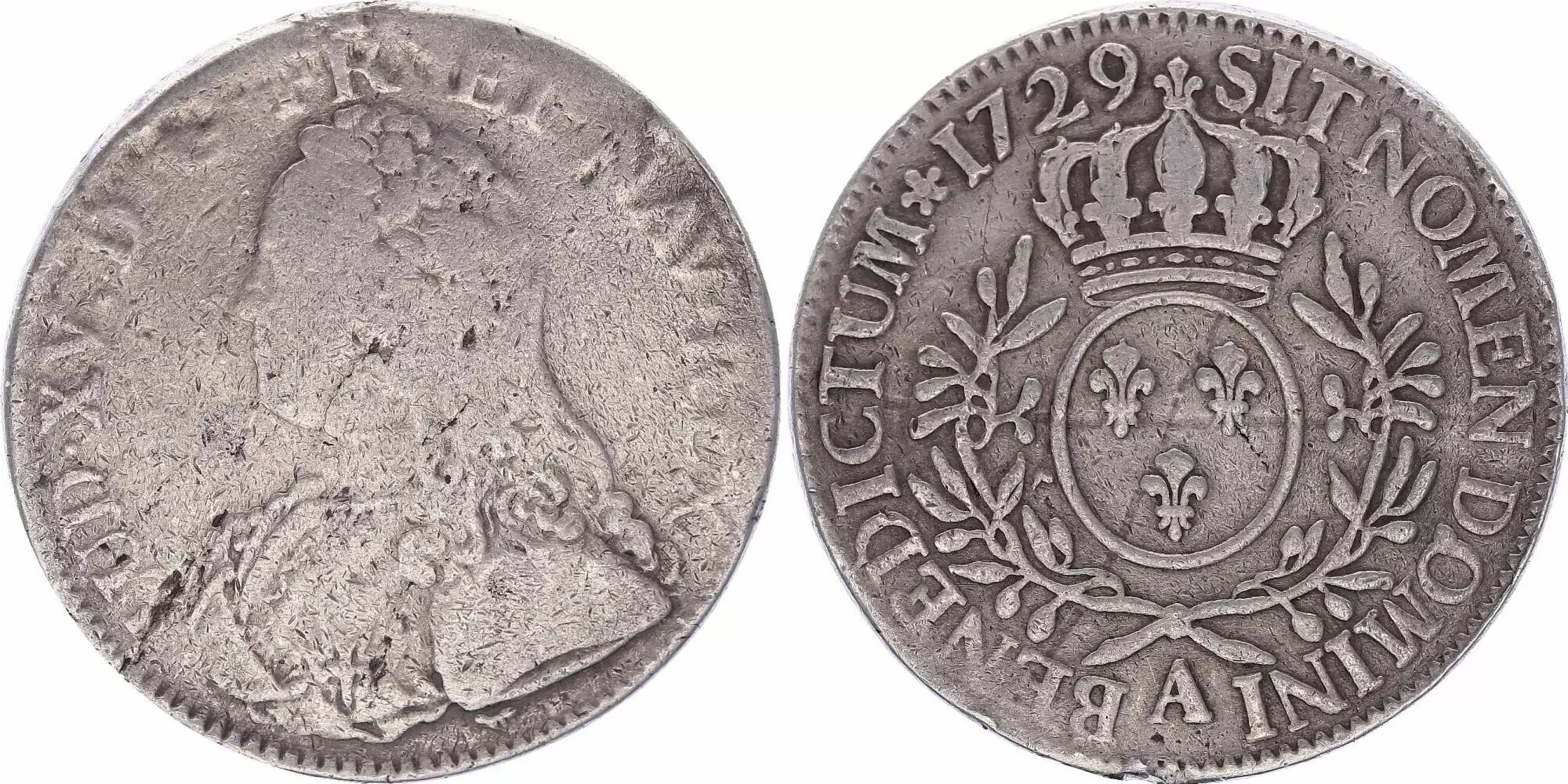 Pièce France Ecu Louis XV aux branches d'olivier - 1729 A Paris
