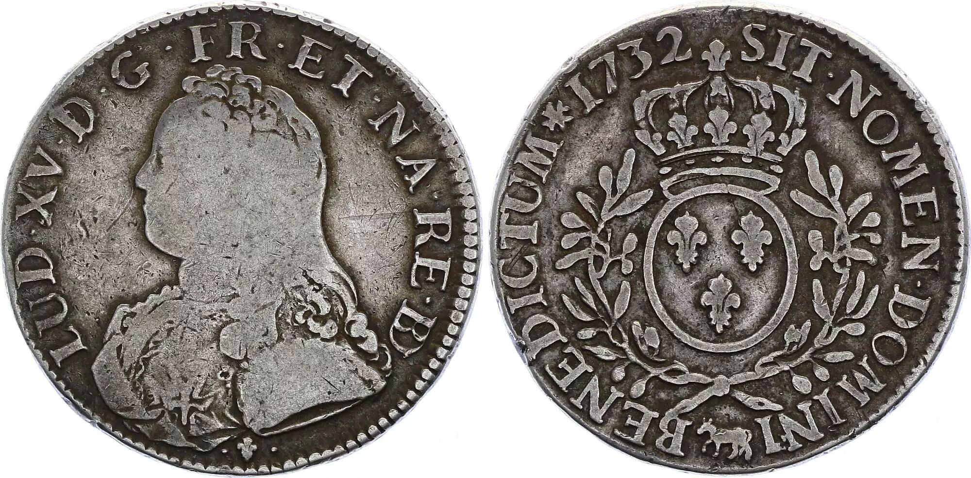 Pièce France Ecu Louis XV aux branches d'olivier - 1732 Pau
