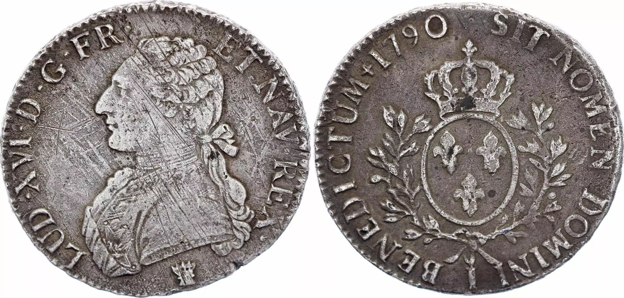 Coin France Ecu Louis XVI arms of France with sprays - 1790 I Limoges