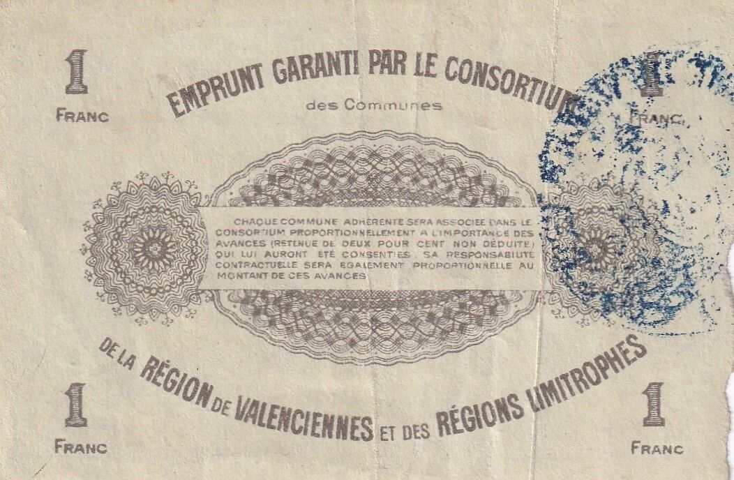 Valenciennes, heavily affected by the German occupation, issued these notes to maintain economic exchanges and support the population. This issue was part of the ?loan guaranteed by the consortium of municipalities in the Valenciennes region and neighboring regions?, a collective mechanism aimed at guaranteeing the value and circulation of these notes.