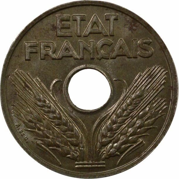 Pièce France Etat Francais - 20 Centimes, Fer - 1944 Paris