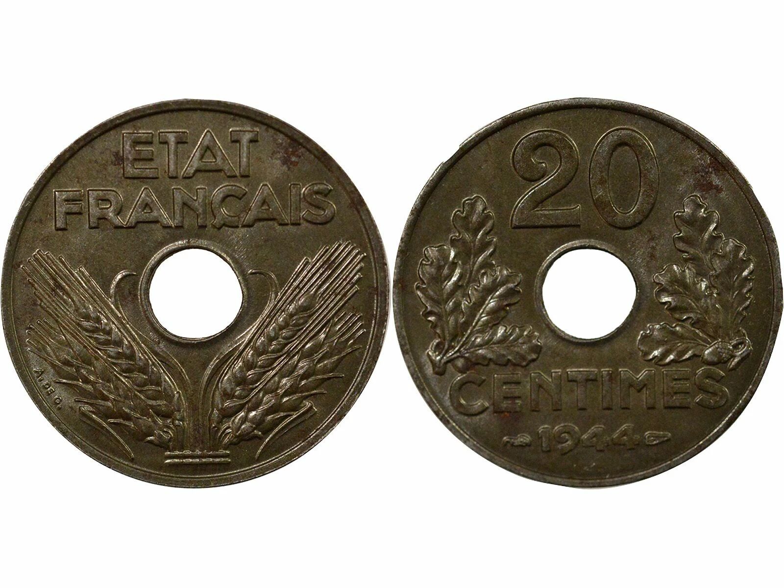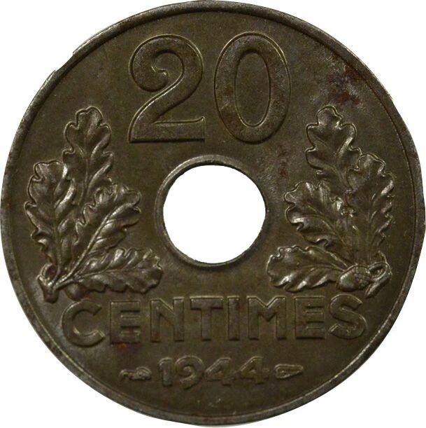 Coin France Etat Francais - 20 Centimes, Iron - 1944 Paris