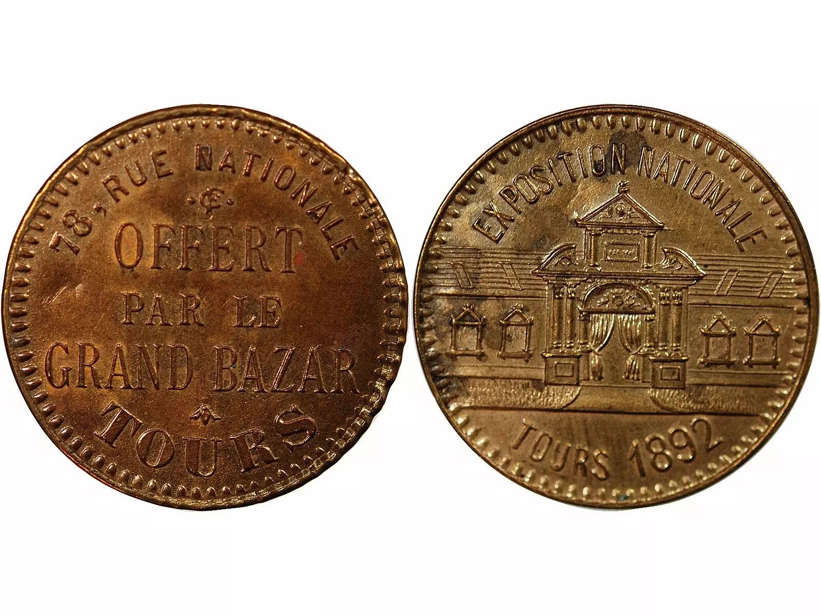 France Exposition Nationale, Grand Bazar - Jeton 1892 Tours