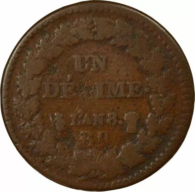 Coin France French Directory, 1 Decime, Dupré Big Diameter - Year 8 BB Strasbourg