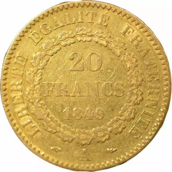Pièce France Génie - 20 Francs Or, IIe République - 1849 A Paris