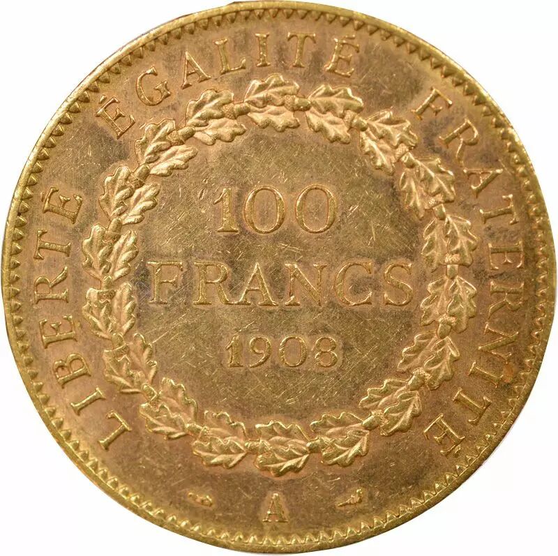 Home > > France Genius - 100 Gold Francs, Liberté Egalité Fraternité - 1908 A Paris