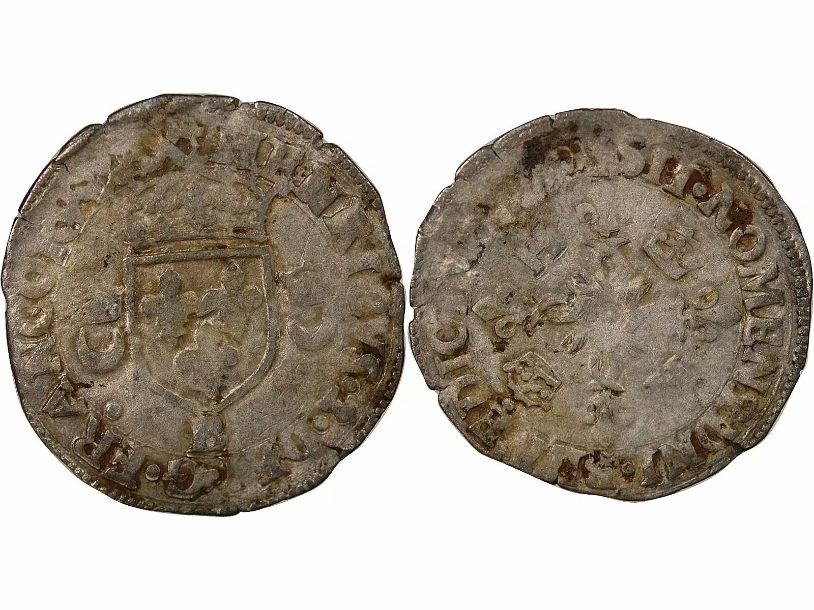 Pièce France HENRI II - DOUZAIN AUX CROISSANTS - 1552 B ROUEN