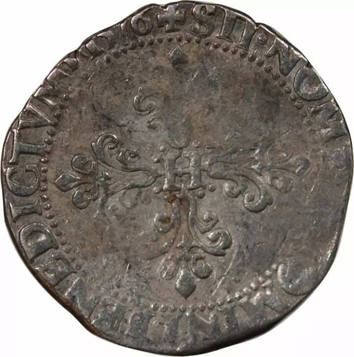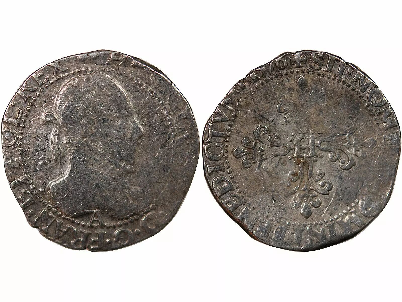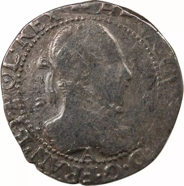 Pièce France HENRI III - 1/2 FRANC AU COL GAUFRE 1576 A PARIS