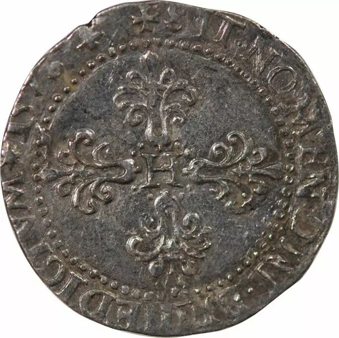 Pièce France HENRI III - 1/2 FRANC AU COL PLAT 1578 H LA ROCHELLE