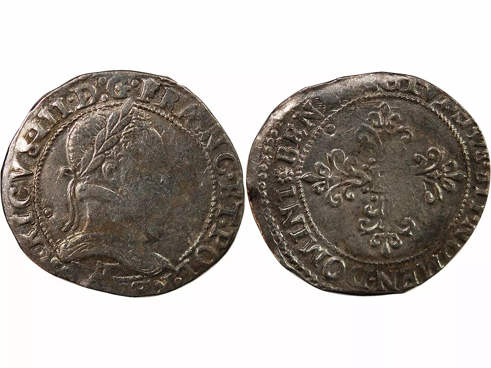 Pièce France HENRI III - 1/2 FRANC AU COL PLAT 1578 T NANTES