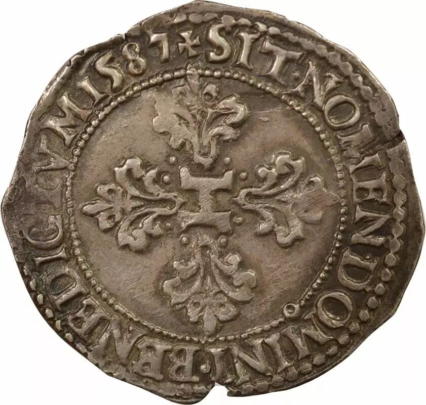 Coin France Henri III - 1/2 Silver Franc, with Flat Collar - 1587 9 Rennes