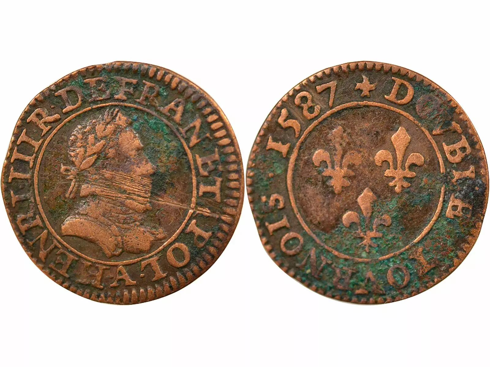 Reverse : + DOVBLE . TOVRNOIS . 1587