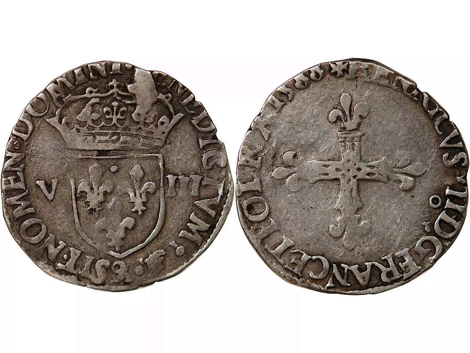 Pièce France HENRI III - ? ECU, CROIX DE FACE 1588 9 RENNES