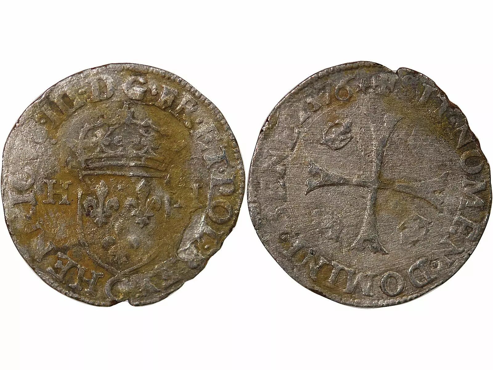 Coin France HENRY III - DOUZAIN WITH TWO H, 1st TYPE - 1576 C SAINT LÔ