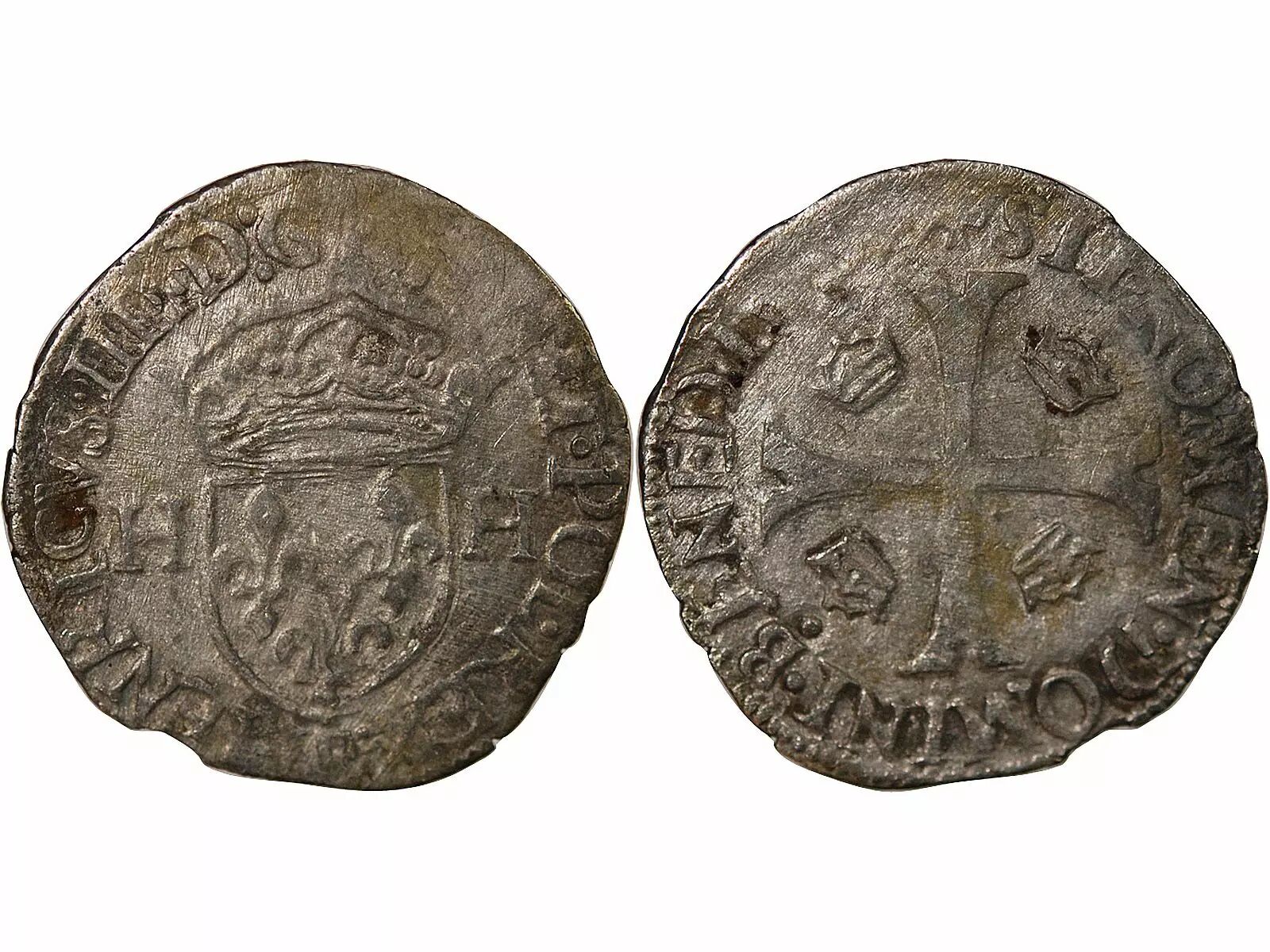Coin France HENRY III - DOUZAIN WITH TWO H, 1st TYPE - 1577 B ROUEN