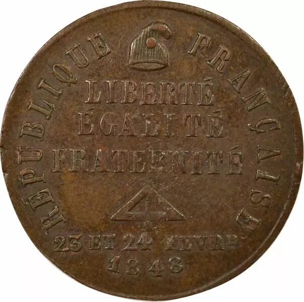Revers : REPUBLIQUE FRANCAISE / LIBERTE / EGALITE / FRATERNITE / 23 ET 24 FEVRR / 1848