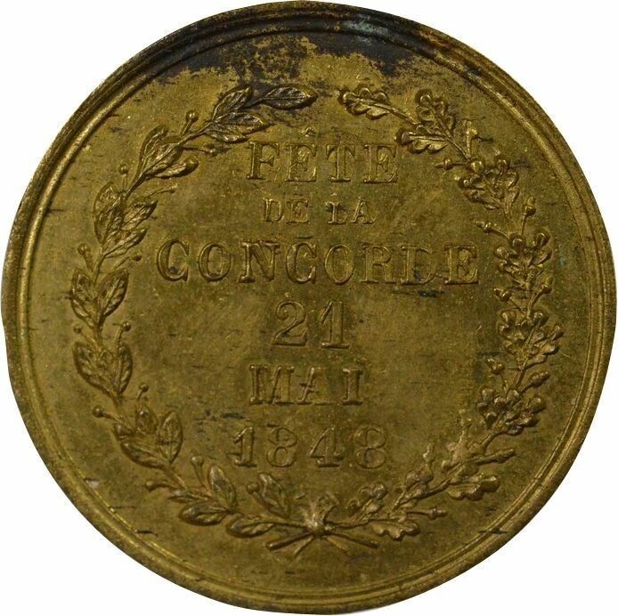 Revers : FÊTE / DE LA / CONCORDE / 21 / MAI / 1848