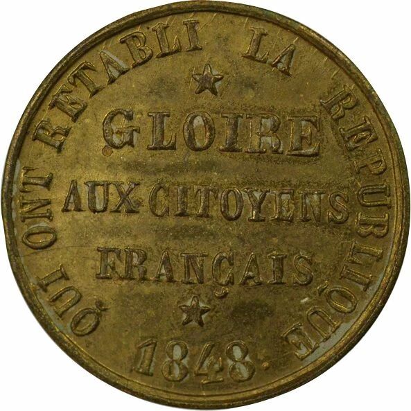 Revers : GLOIRE / AUX CITOYENS / FRANCAIS / QUI ONT RETABLI LA REPUBLIQUE / 1848 .
