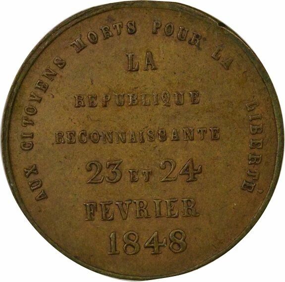 Reverse : AUX CITOYENS MORTS POUR LA LIBERTE / LA / REPUBLIQUE / RECONNAISSANTE / 23 ET 24 / FEVRIER / 1848