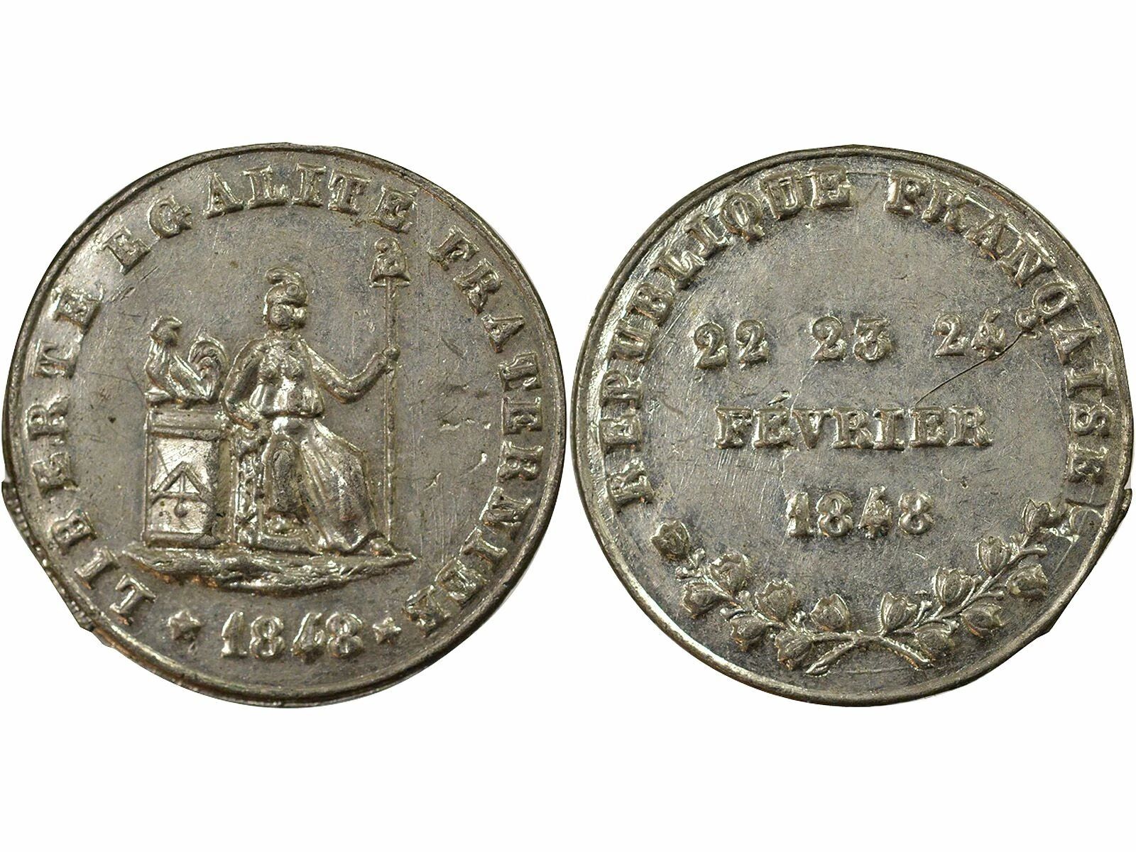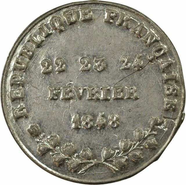 Reverse : REPUBLIQUE FRANCAISE / 22 23 24 / FEVRIER / 1848