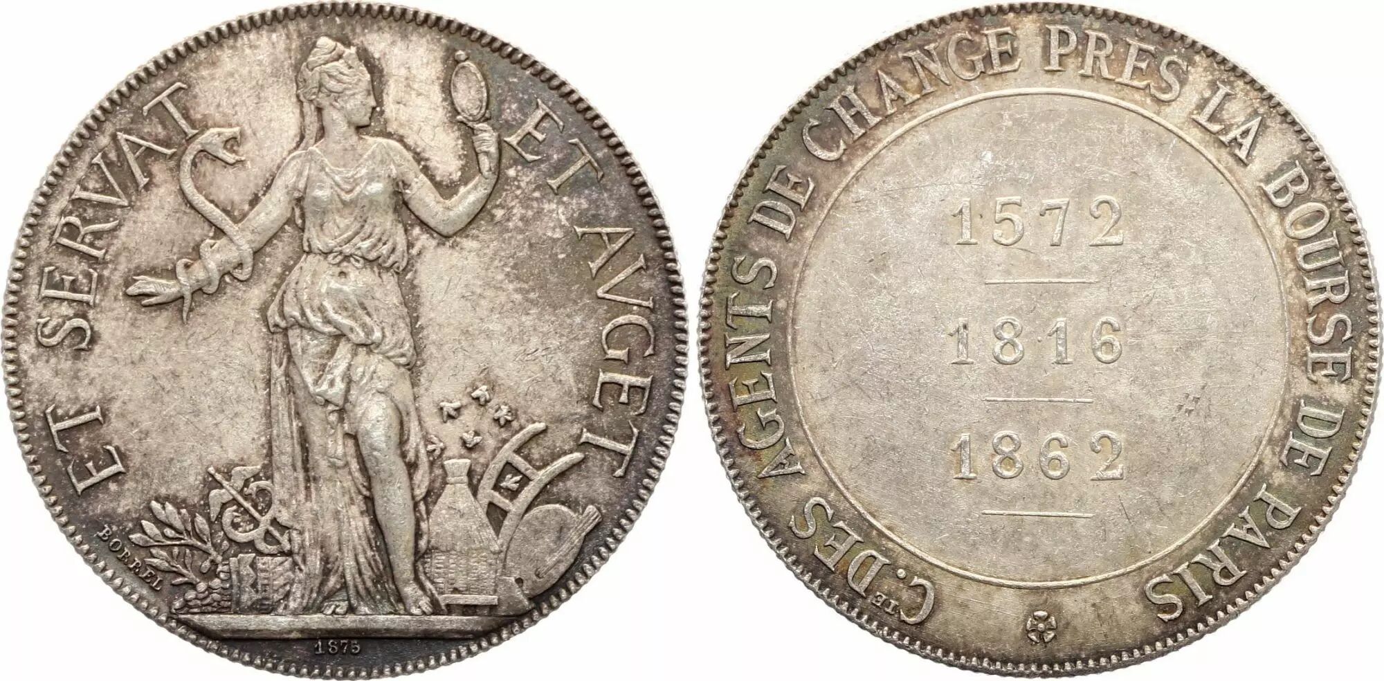 Accueil > Jetons Médailles Décorations > Jetons ( depuis 1600 ) > France Jeton Agents de Change - Bourse de Paris - 1862 (1875) - Argent