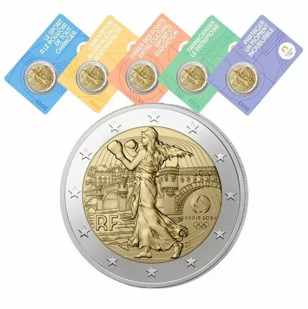 Accueil > Archivage > archivage-Archivage > France Jeux Olympiques PARIS 2024 - La Semeuse - LOT 5 X 2 Euros Commémo. BU - FRANCE 2023 - Blister