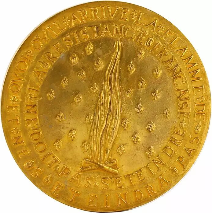 Revers : " Quoi qu'il arrive la flamme de la résistance Française ne doit pas s'éteindre et ne s'éteindra pas "