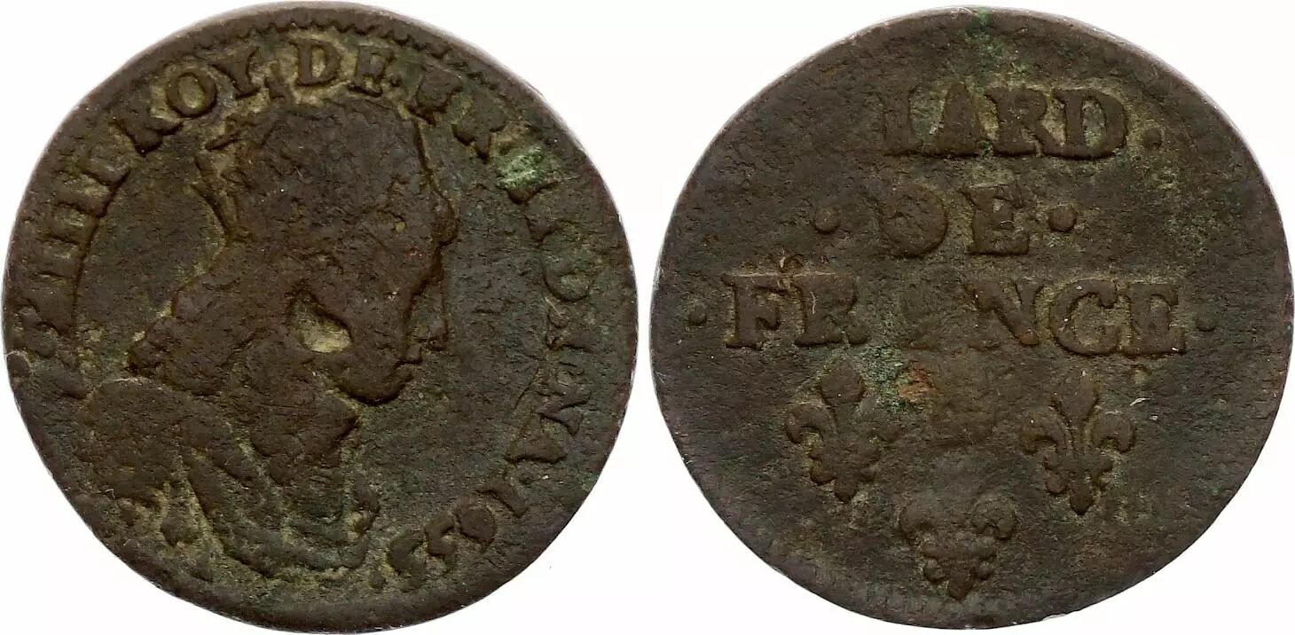 Pièce France Liard de France au buste juvénile - 1655 - B Acquigny