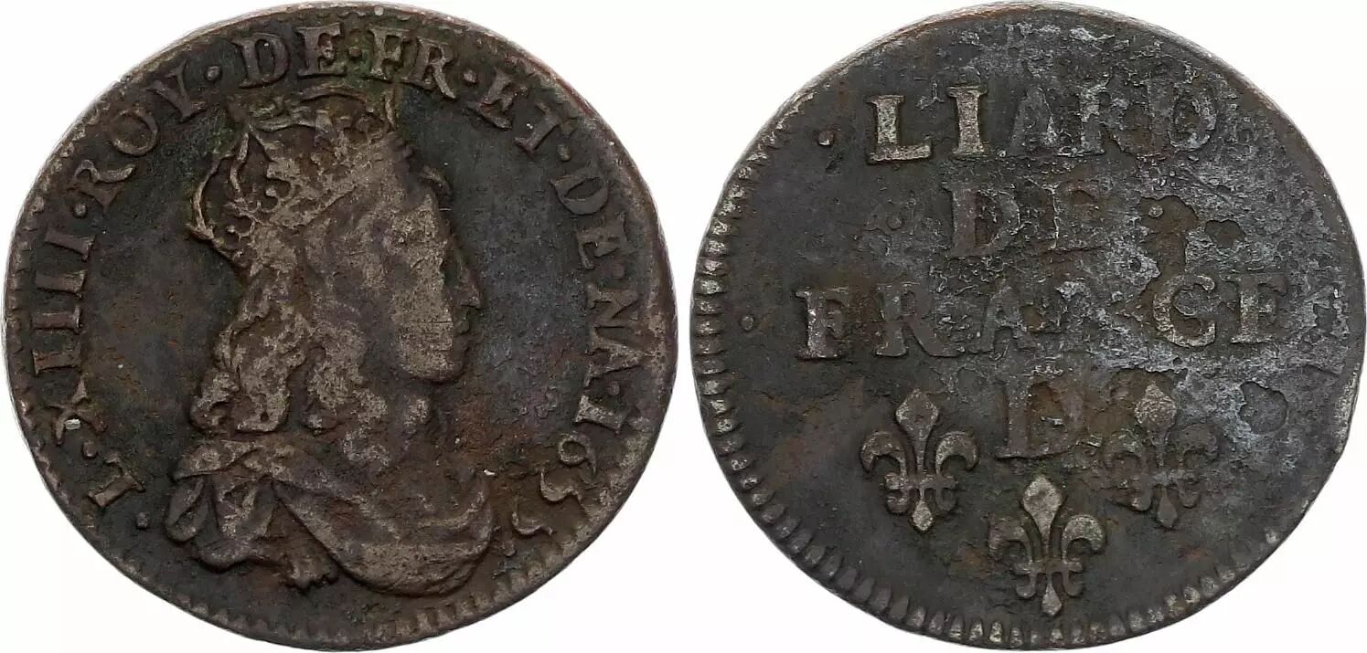 Liard de France au buste juvénile - Louis XIV - 1655 D Lyon