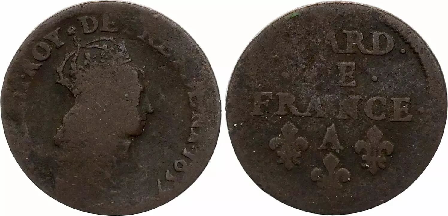Home > > France Liard de France - Louis XIV au buste juvénile - 1657 A Corbeil