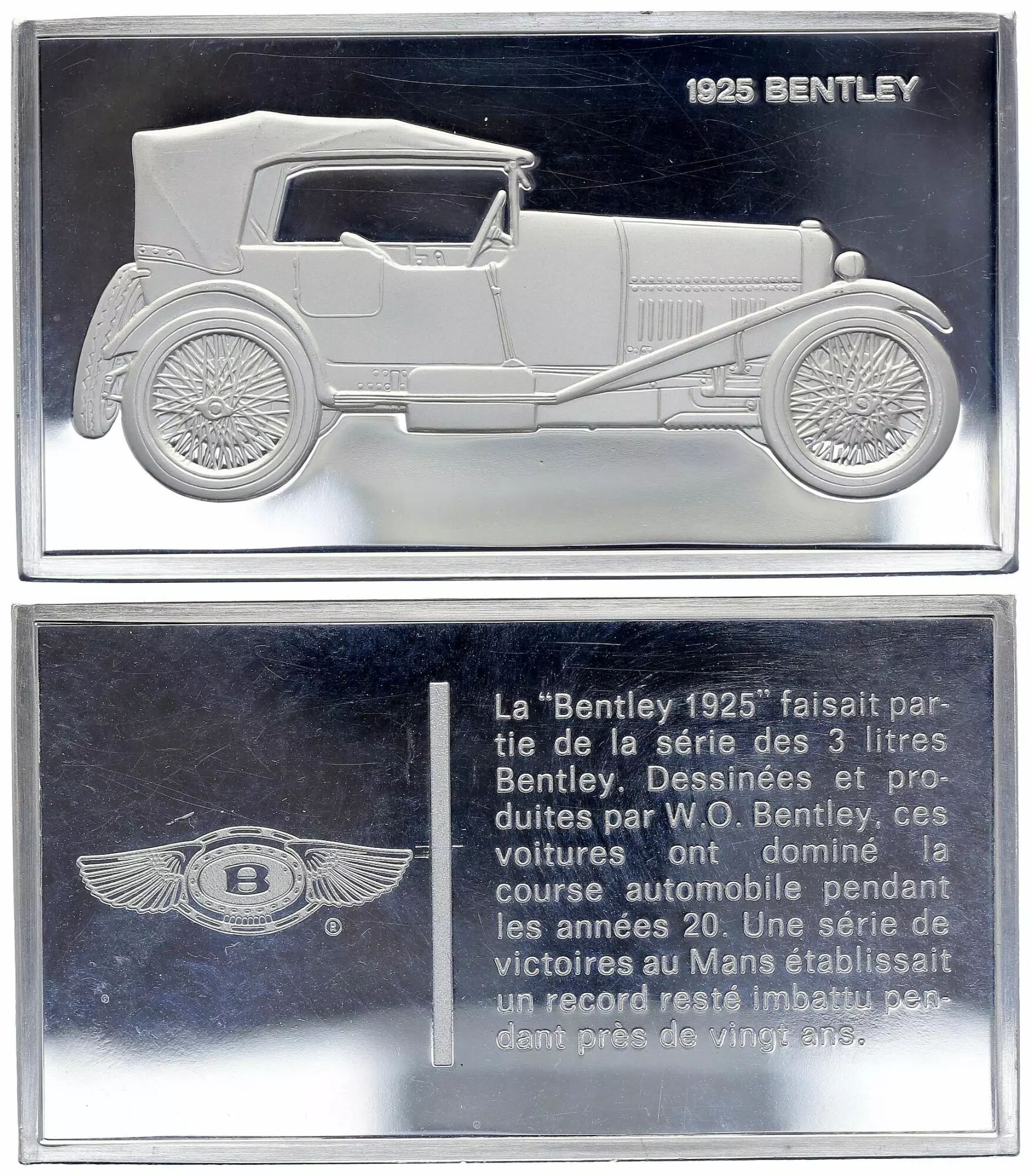 Accueil > Archivage > France Lingotin 2 Onces - Médaillier Franklin - Bentley 1925 (1925) - Argent