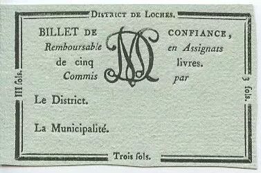 Loches District - 1792, R5 Rare ! without signatureIssuing date : 16/03/1792Serie : 37