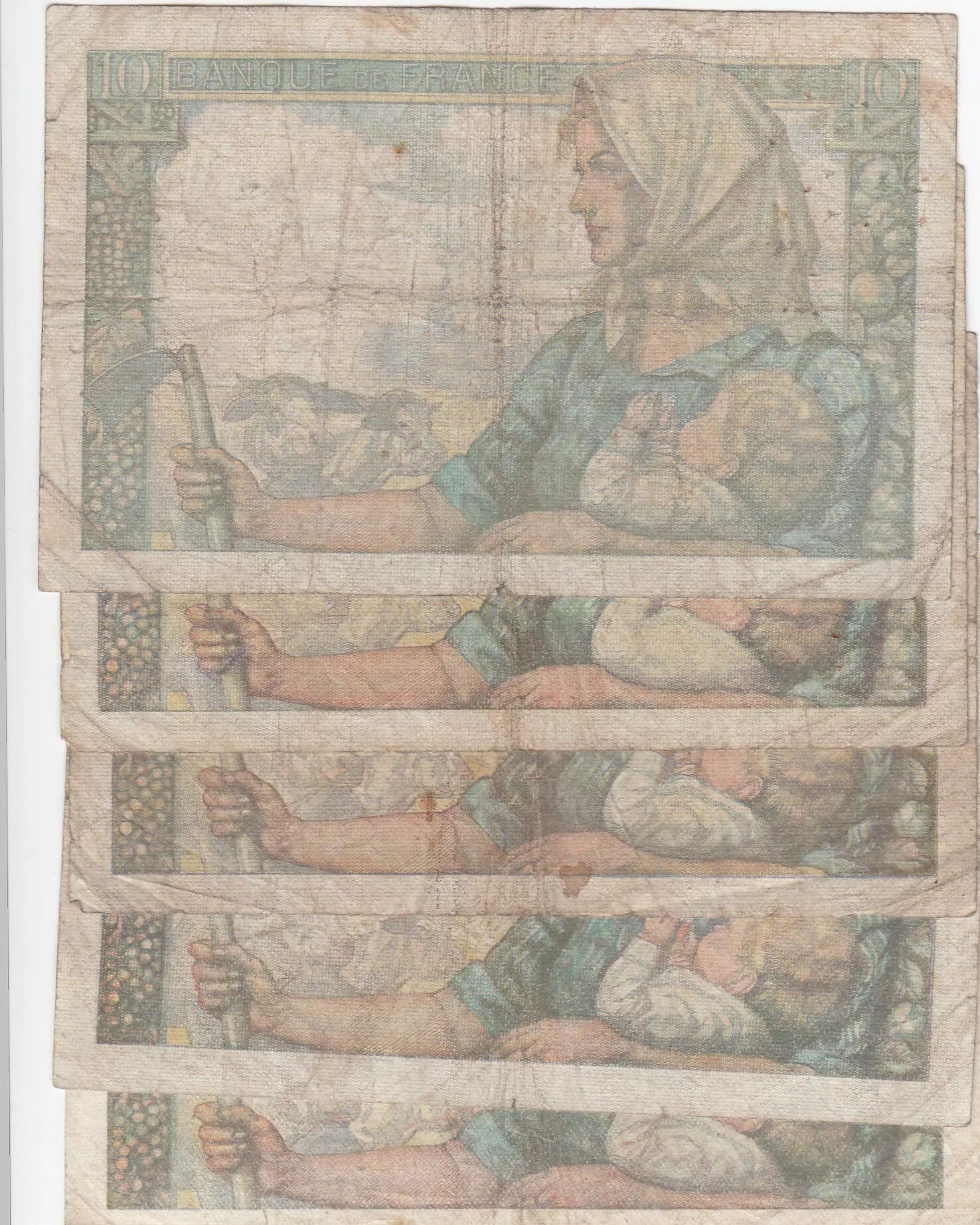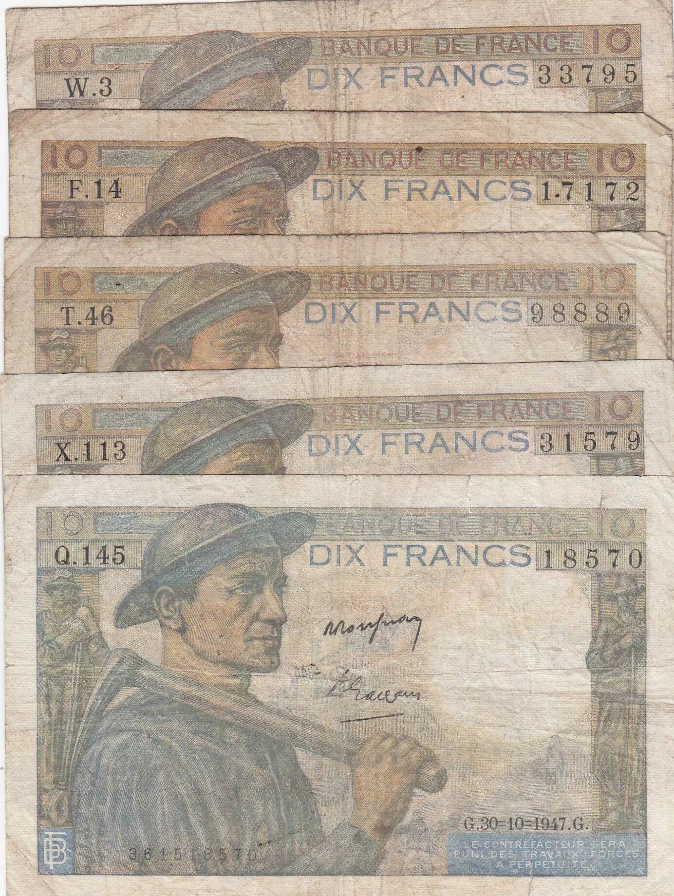 Billet France Lot 5 x10 Francs Mineur - dates différentes 1941 à 1947