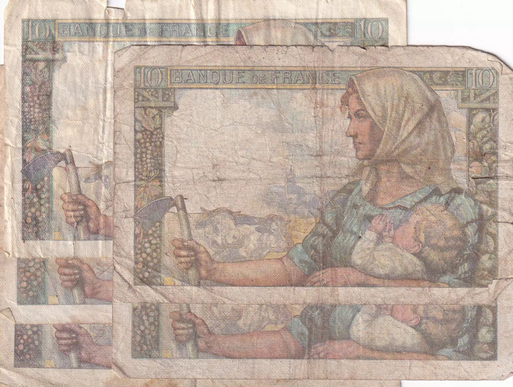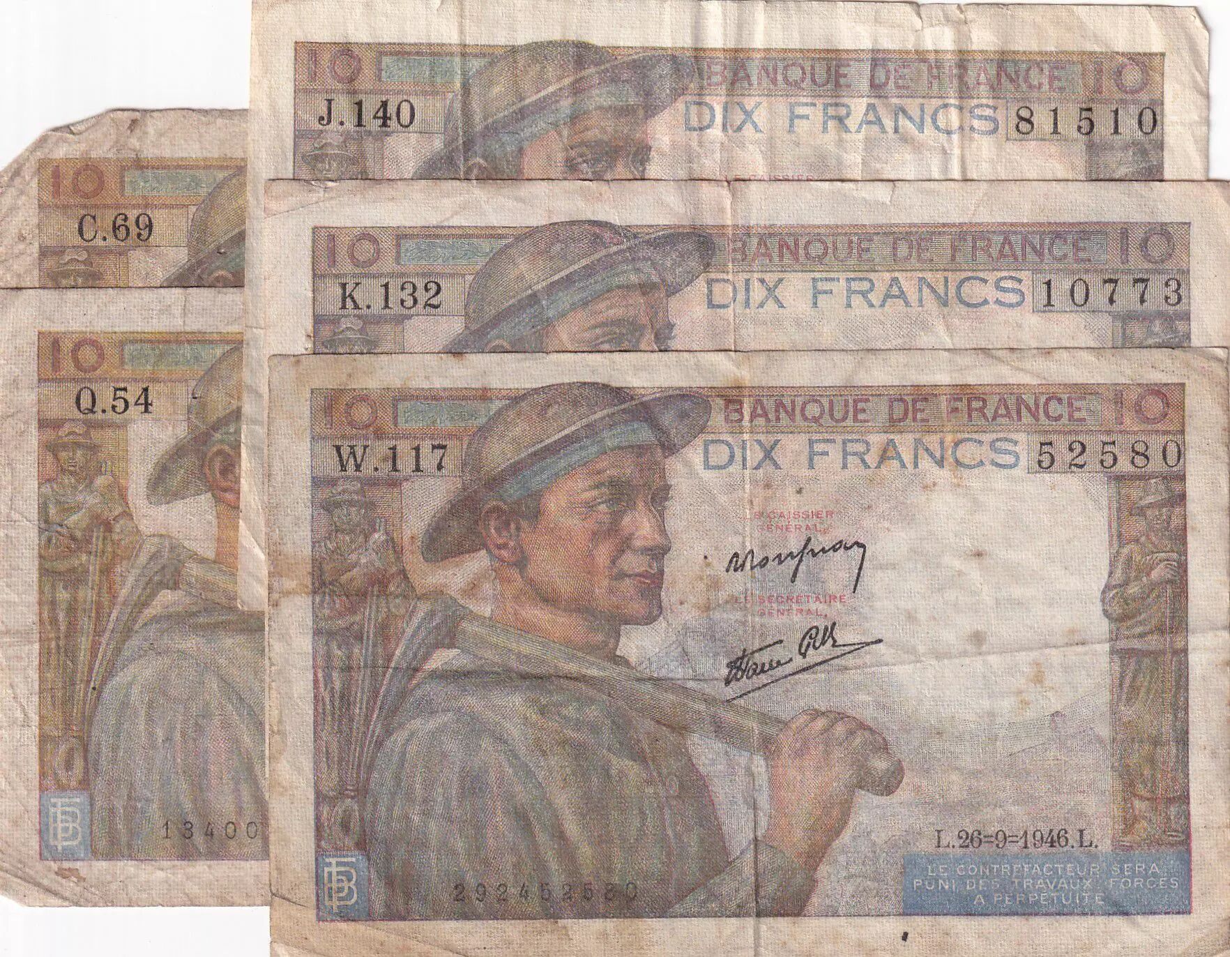 Billet France Lot 5 x10 Francs Mineur - dates différentes 1943 à 1947