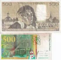 Billet France Lot 500 Francs - Pierre et Marie Curie & Pascal - TTB