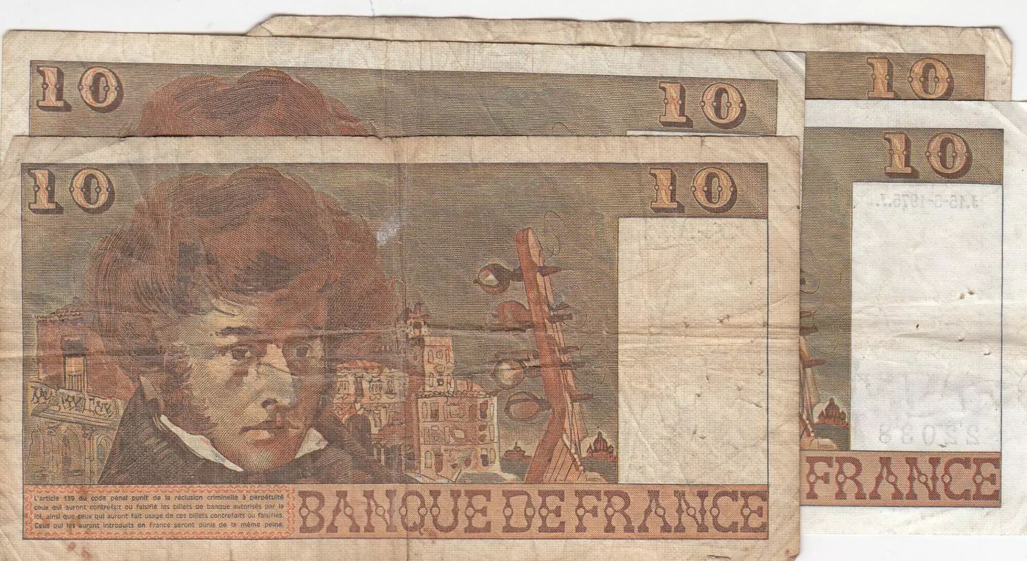 Banknotes with folds, pinholes, stains, potential cuts, no missing parts. Various years and series according to availability