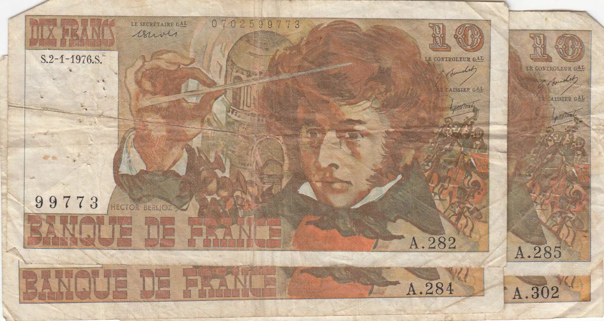 Banknotes with folds, pinholes, stains, potential cuts, no missing parts. Various years and series according to availability