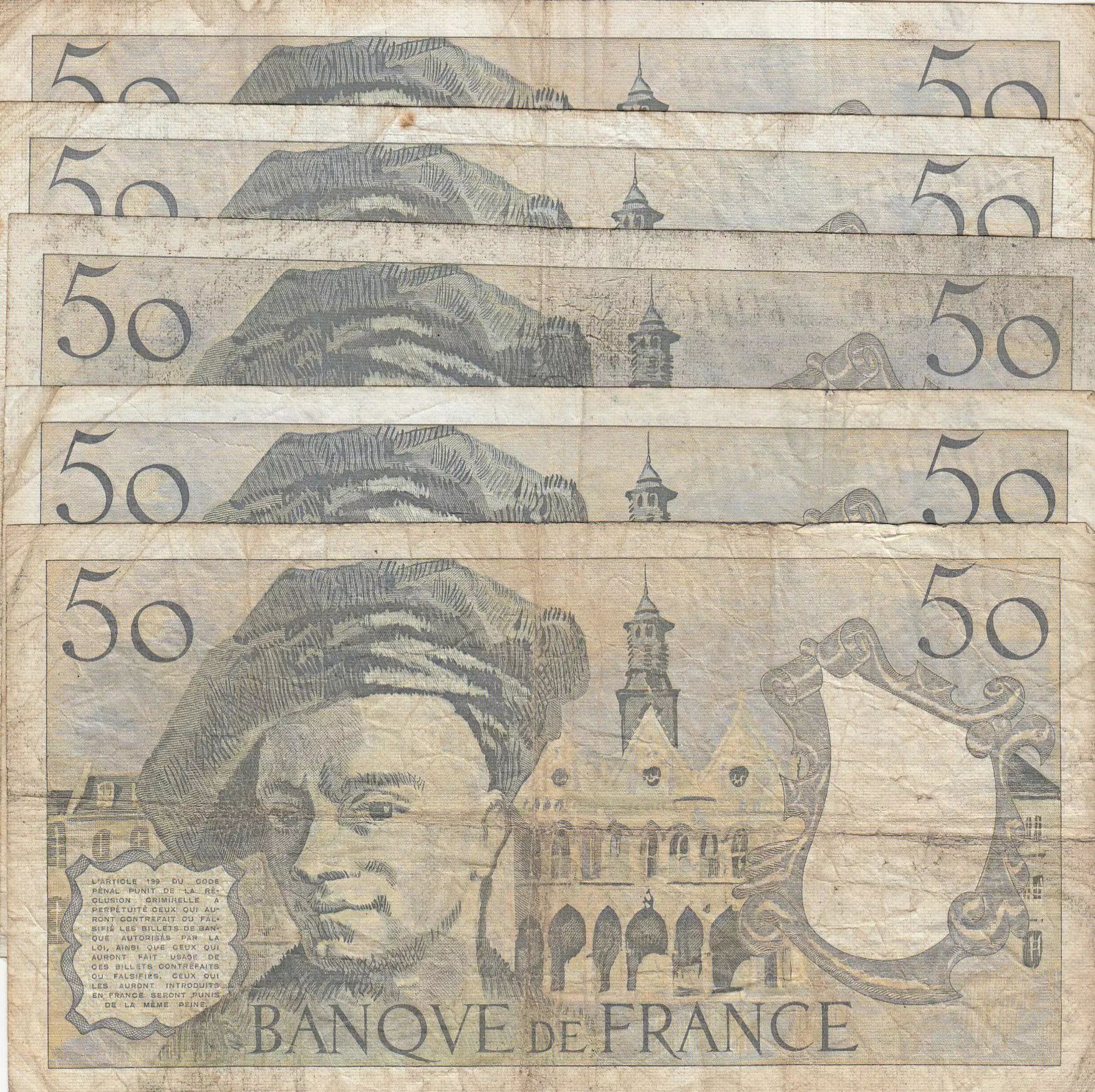 Lot of 5 notes, tears, folds, pinholes, used, but at small price