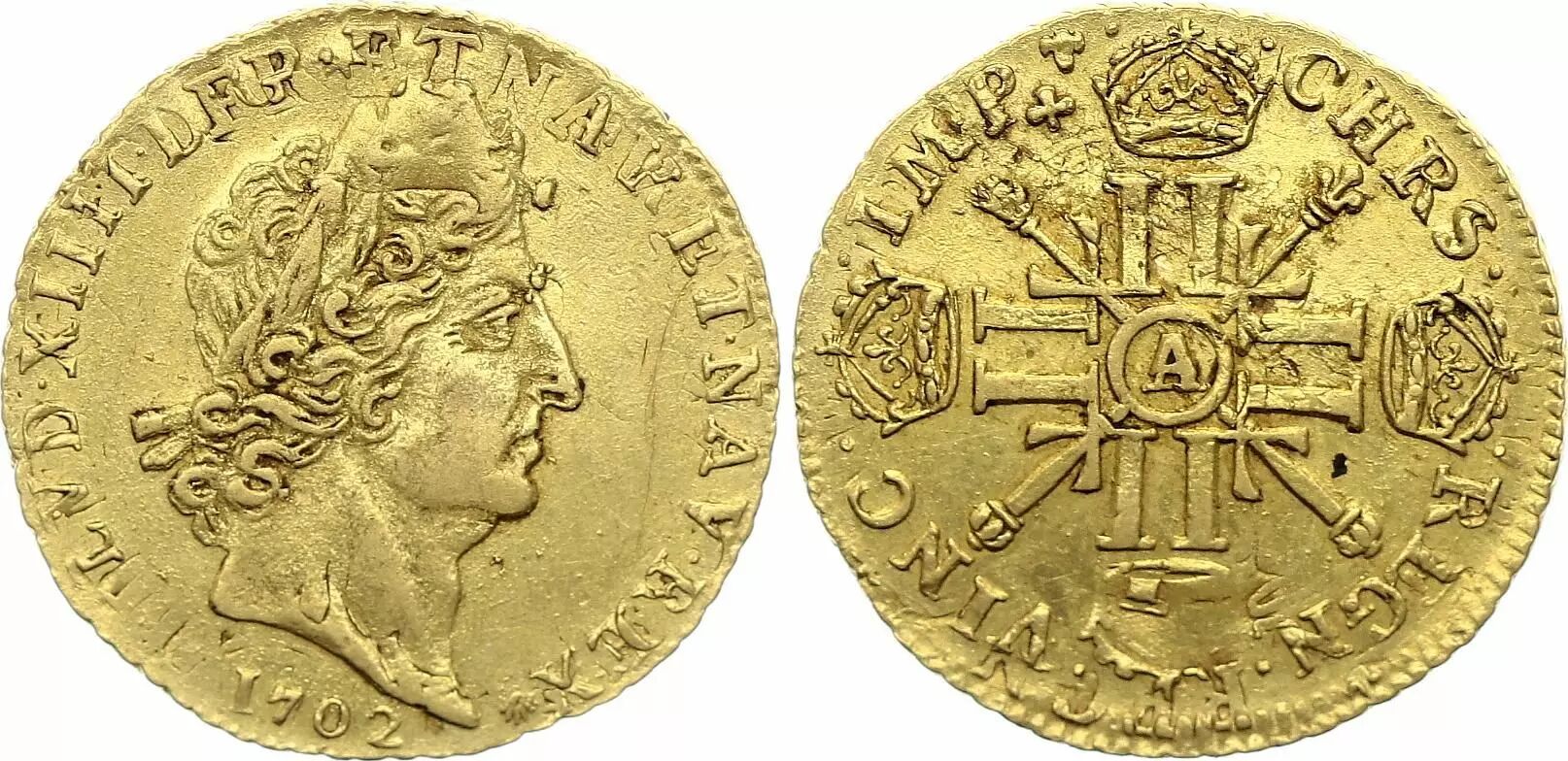 Home > > France Louis d'or, Louis XIV aux Insignes et 8 L - 1702 A Paris - Gold