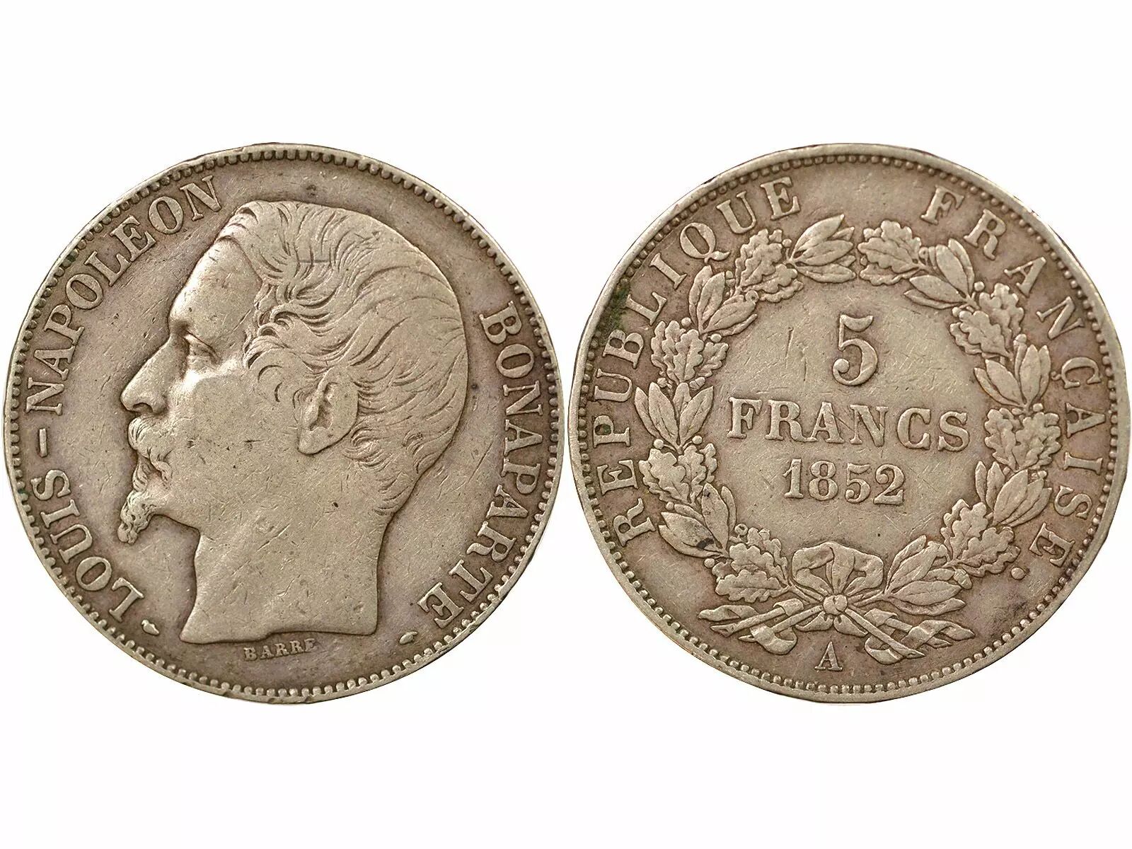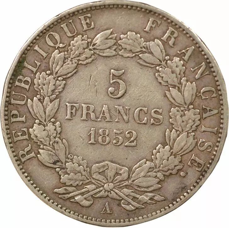 Home > > France Louis Napoléon Bonaparte - 5 Francs Silver, Tête nue - 1852 A Paris