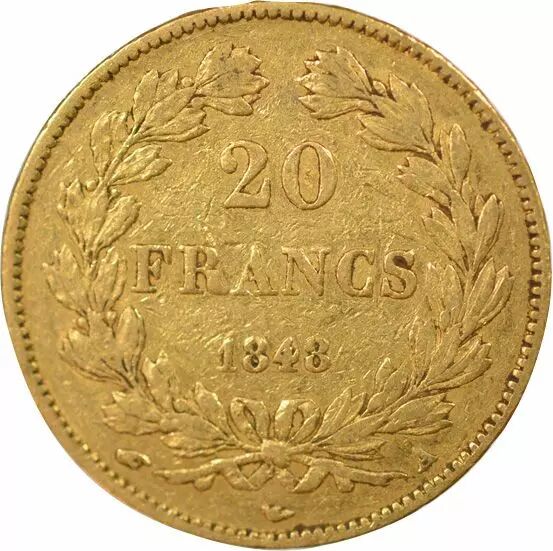 Coin France Louis Philip I - 20 Gold Francs, Domard, Laureate head - 1848 A Paris