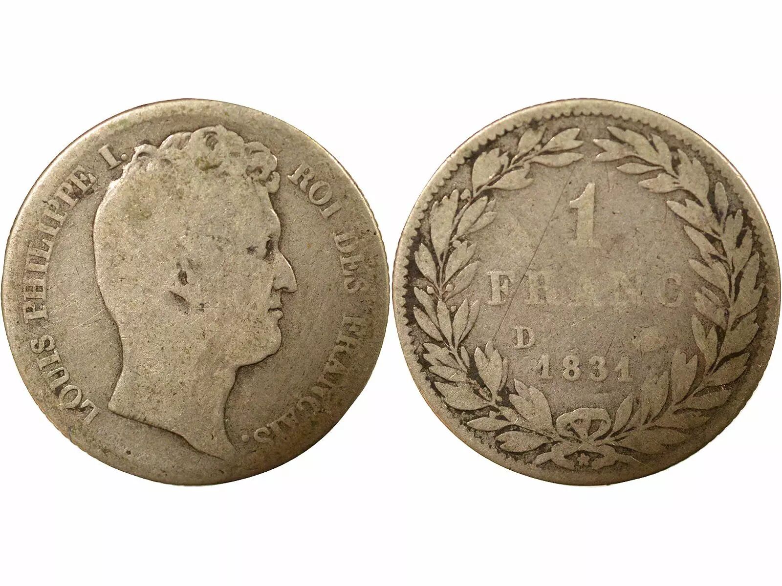Coin France Louis Philip I - Silver Franc, Bare Head - 1831 D Lyon