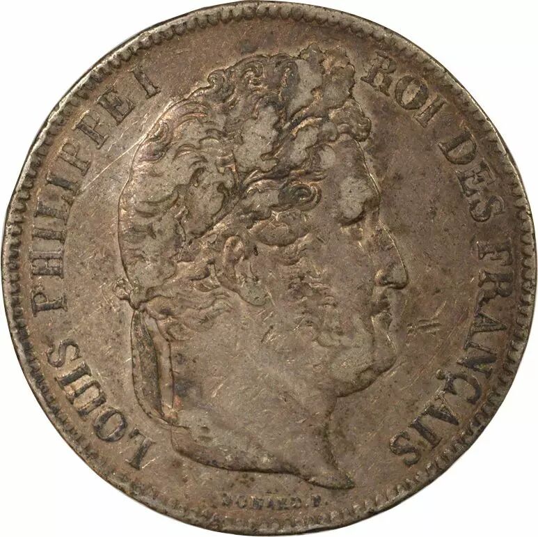 Home > > France Louis Philippe - 5 Silver Francs, Raised Lettering - 1841 K Bordeaux