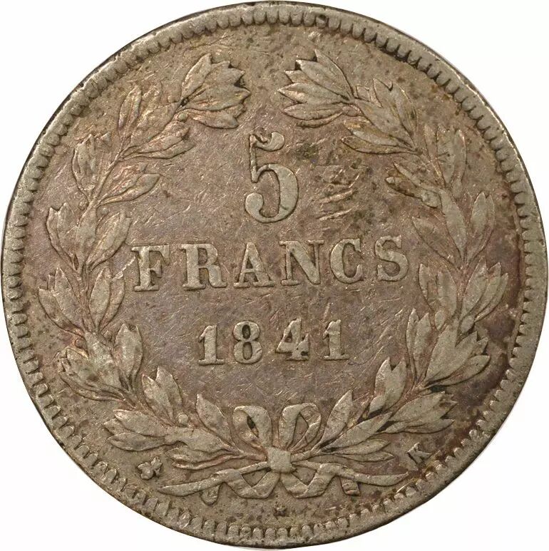 Coin France Louis Philippe - 5 Silver Francs, Raised Lettering - 1841 K Bordeaux