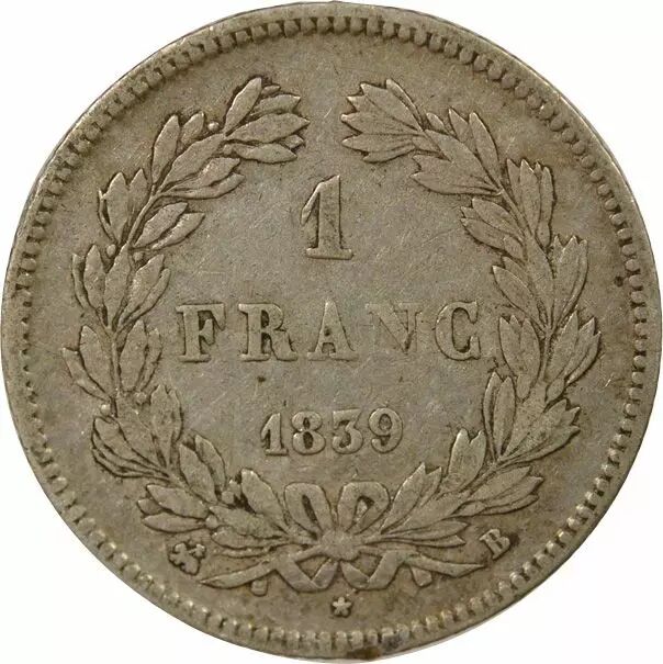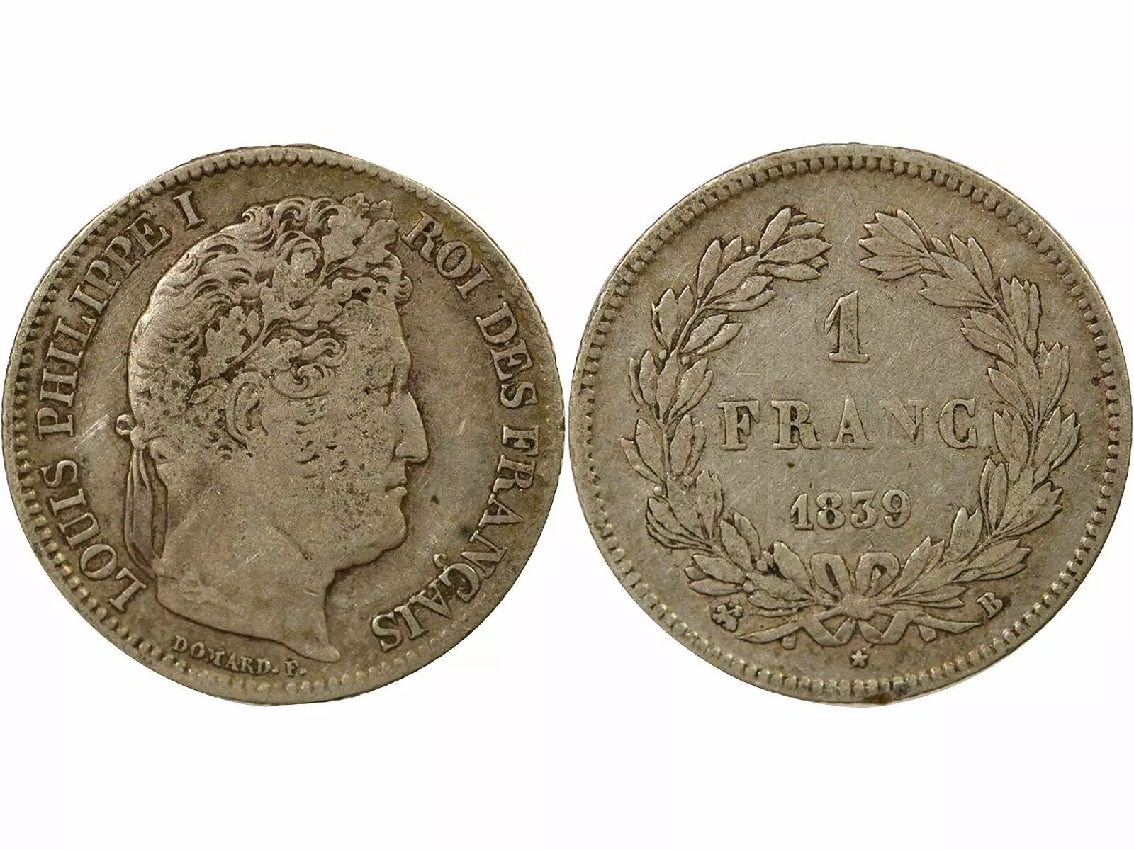 Pièce France Louis Philippe I - 1 Franc Argent, Tête Laurée - 1839 B Rouen